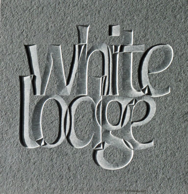 Lettering: hand drawn and hand carved inscriptions in various stones and laser cut metal pieces