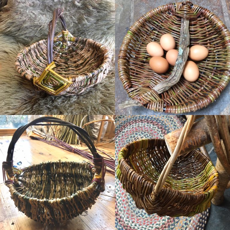 No basket has ever been made by a machine…. where there are baskets there are people and where there are people there have always been baskets. Louise makes and teaches under the name Rough Around the Hedges. Her basketmaking activities follow the seasons and varied landscape of Hampshire in the South Downs National Park, UK. Winter lends itself to carving, forming and setting frames from coppice woods and repair work, while Spring completes the annual willow harvest and prompts weaving of nests, feeders and plant supports. Summer provides plenty of festival and course opportunities to share basketry skills and techniques with others, while Autumn invites hedgerow and garden harvests, foraging of weaving fibres and gift giving.